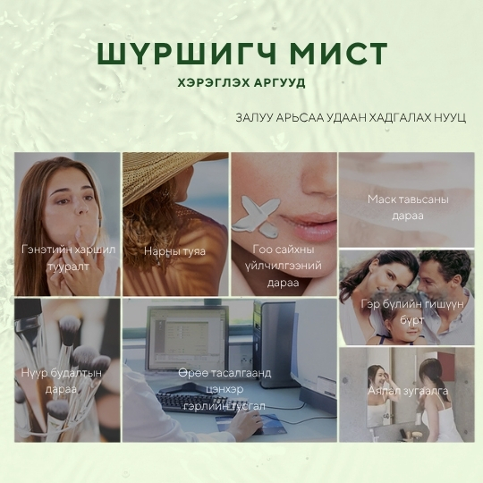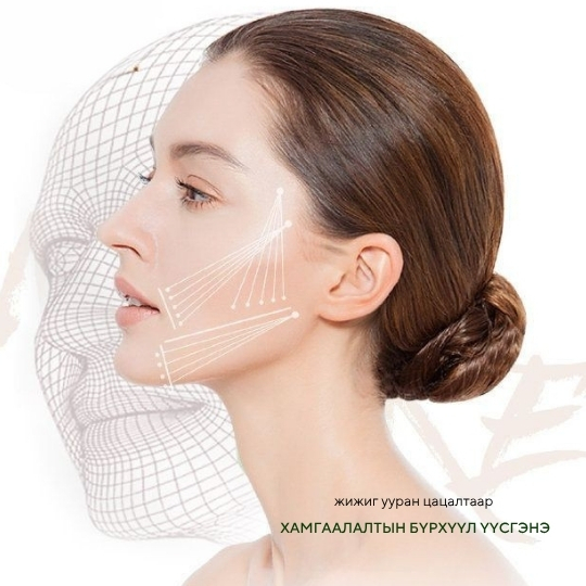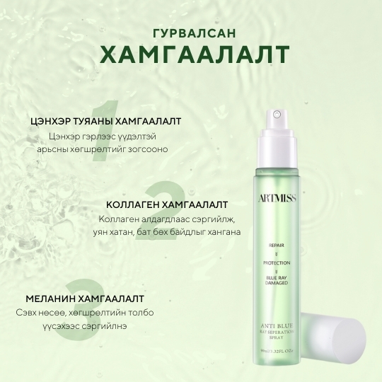 Утас, компьютер, зурагт, гэрэл зэрэг дэлгэцийн цэнхэр хорт туяанаас хамгаалах бүрхүүл үүсгэж, арьс өнгөө алдаж, гундаж хөгшрөх үйл явцыг зогсооно.