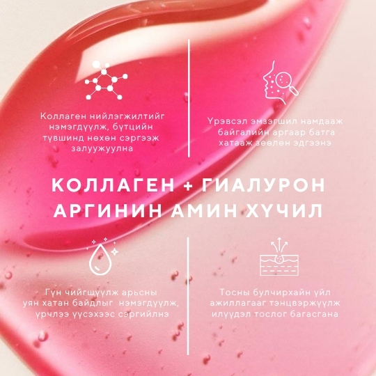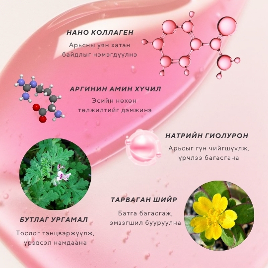 Арьсыг гүн чийгшүүлж, уян хатан чанарыг сайжруулж, нөсөө толбо багасган цайруулж, коллаген нийлэгжилтийг дэмжиж залуужуулна