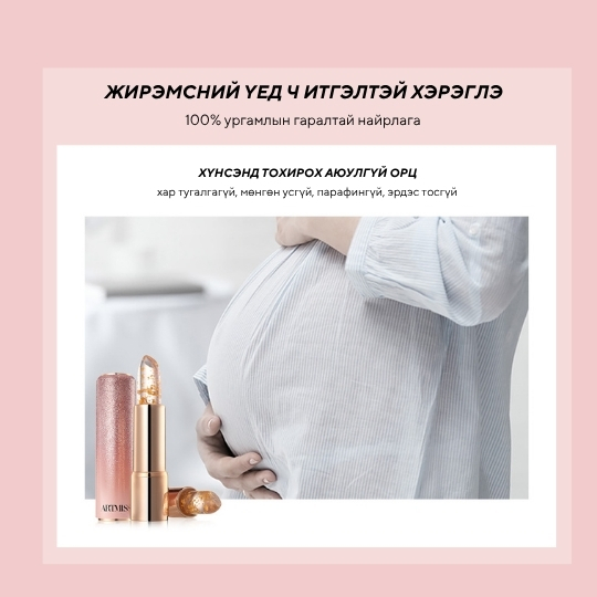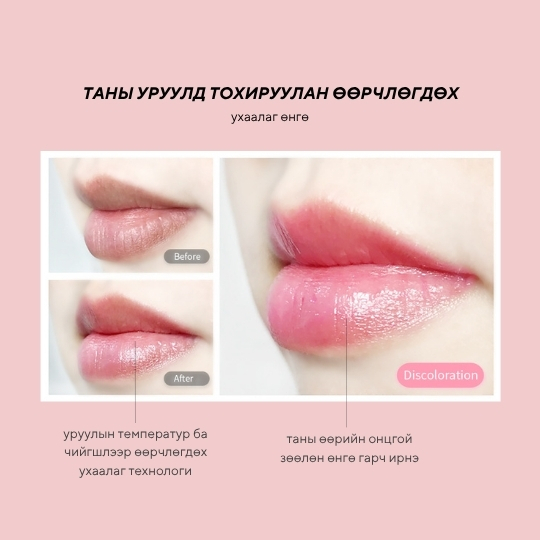 Уруулын үрчлээ тэнийлгэж, урт хугацаанд чийгшил тэжээлээр хангаж, булбарай зөөлөн болгож, уруулын хатсан, хагарсан, хомхой зэрэг өвчнийг эдгээнэ