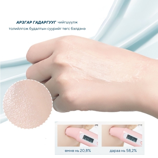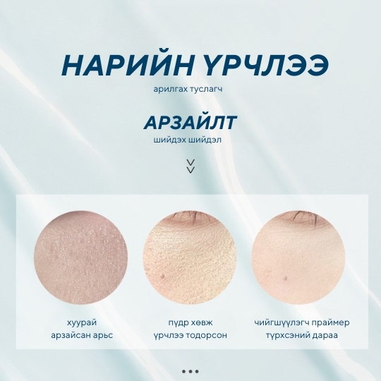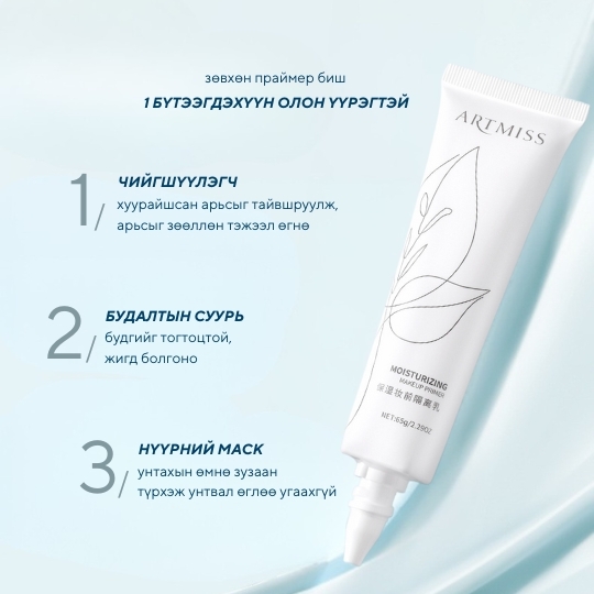 Усан суурьтай гүн чийгшүүлэх праймер нь арьсны хуурайшилт арзайлтыг хормын төдийд дарж толийлгон, нүүр будгийн шингэцийг сайжруулж арьсыг хамгаална