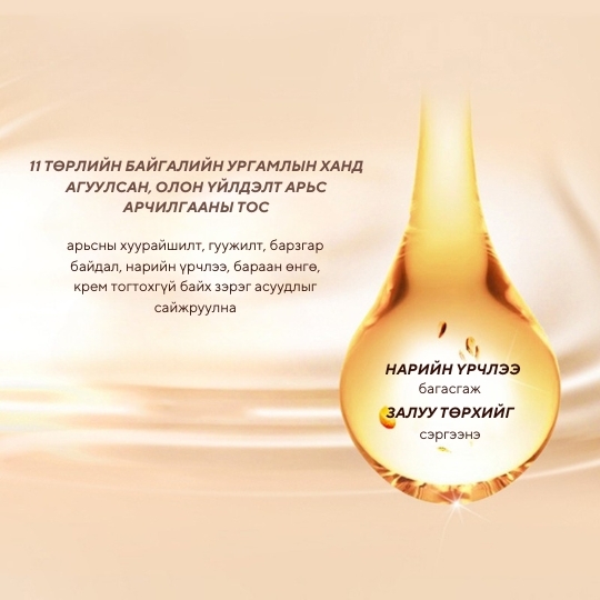 Олон төрлийн ургамлын цэвэр охь нь арьсны бүх төрлийн асуудлыг эмчилж, дээд зэргийн чийг тэжээлийг жинхэнэ давхарга хүртэл нэвтрүүлнэ