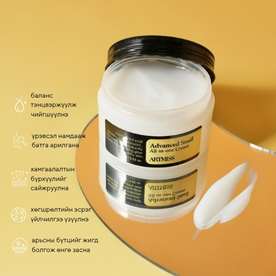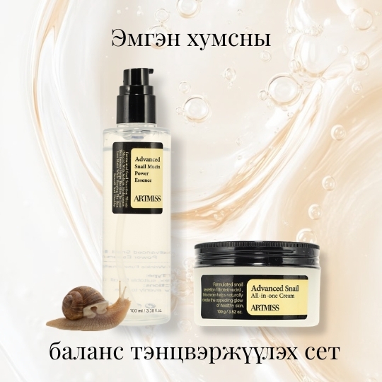 Энэхүү 2хос сет нь эмгэн хумсны найрлагатай бөгөөд арьсыг гүнд нь хүртэл чийгшүүлж, үрчлээний эсрэг үйлчилгээ үзүүлэх бүтээгдэхүүн юм. Арьсыг хурдан хугацаанд нөхөн төлжүүлэн, баланс тэнцвэржүүлж чийгшүүлнэ. Ингэснээр арьсны асуудлууд болох батгашилт, улайлт, Үрэвсэл намдааж батга арилгана үрчлээг тэнийлгэж өгөх юм. Усан суурьтай шингэн бүтэцтэй тул арьсанд наалдамхай таагүй мэдрэмж төрүүлэхгүй шингэлт сайтай.