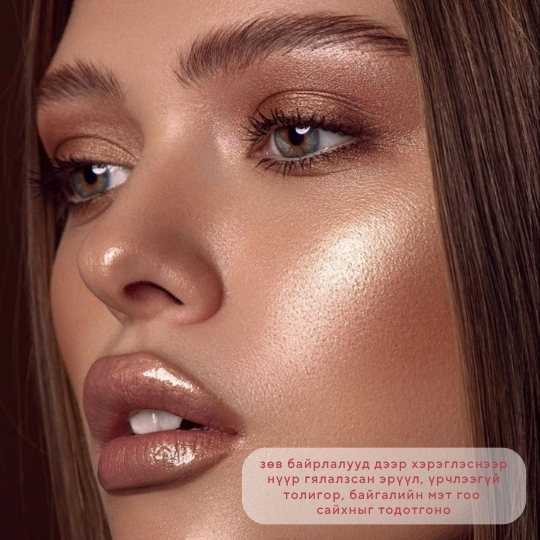 Хялгасан үрчлээ тэнийлгэж арьсыг чийглэг, гялалзсан, эрүүл харагдуулж нүүрний онцлох хэсгүүдийг тодотгоно