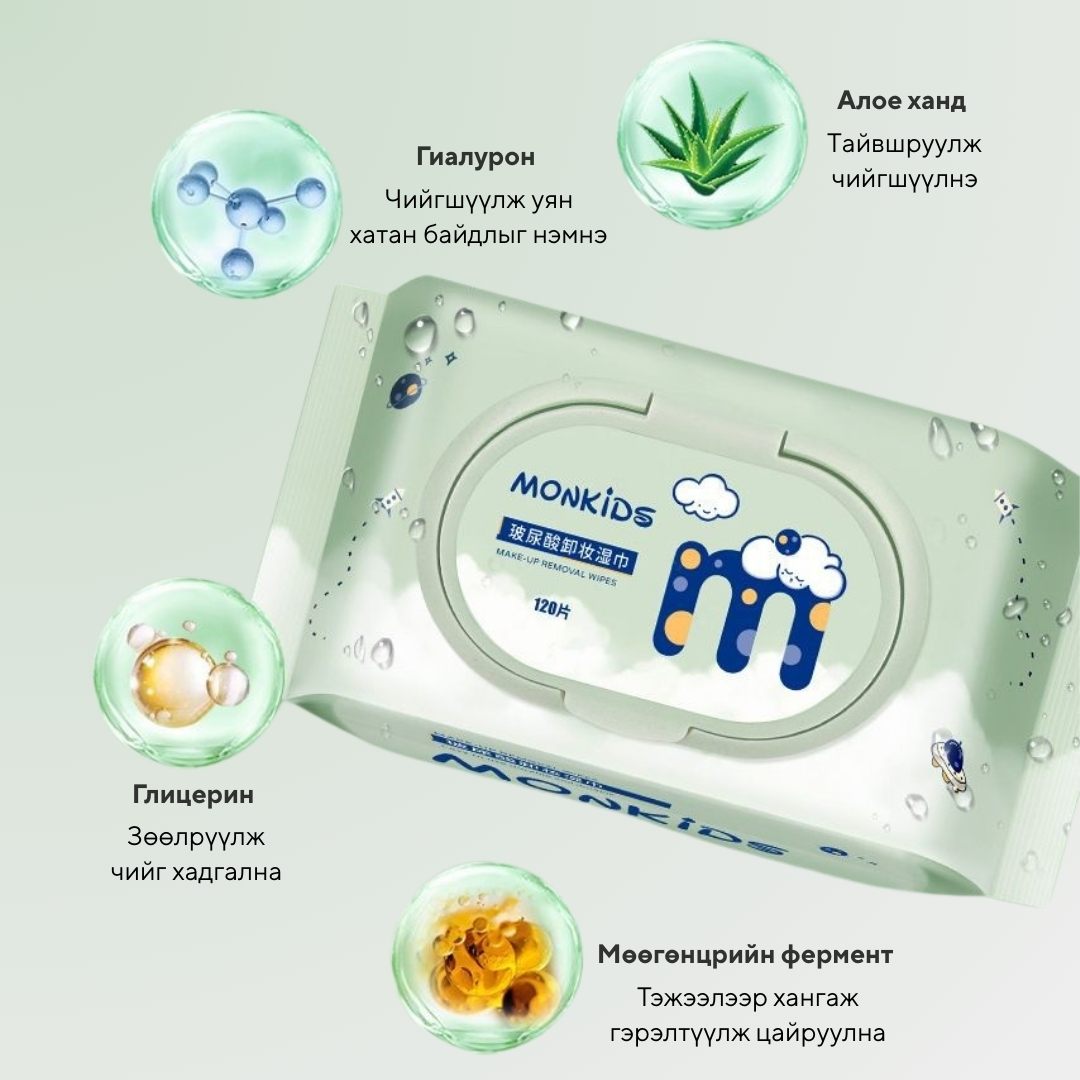 MONKIDS MAKEUP REMOVER WIPES 120PCS