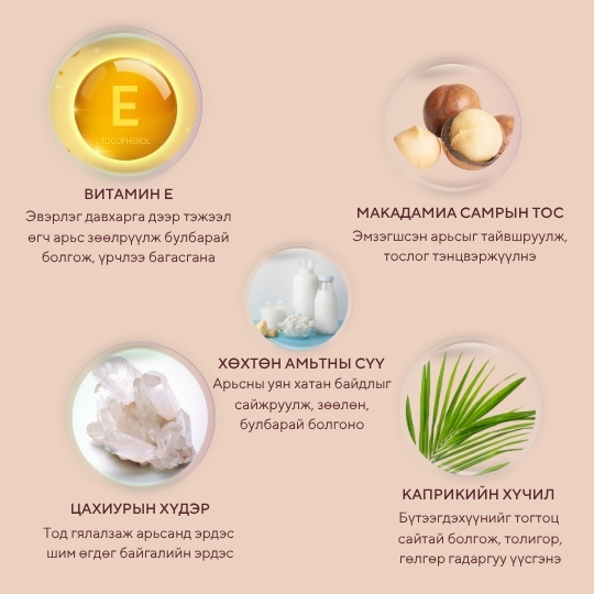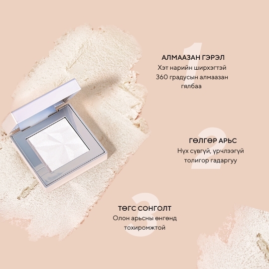 Хялгасан үрчлээ тэнийлгэж арьсыг өргөгдсөн залуухан, гялалзсан, эрүүл харагдуулж нүүрний онцлох хэсгүүдийг тодотгоно