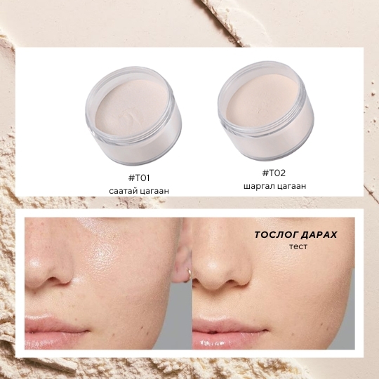 Нүүрний хэт тослогжилт, гялайлтыг барьж будгийг өдрийн турш тогтоцтой болгон, гадаргууд наалдахаас хамгаална
