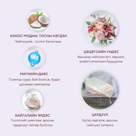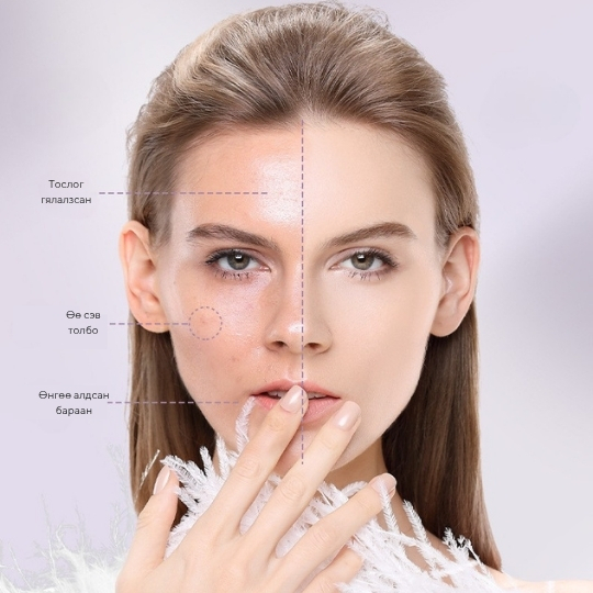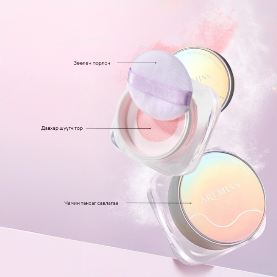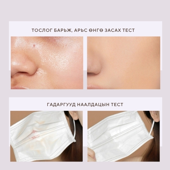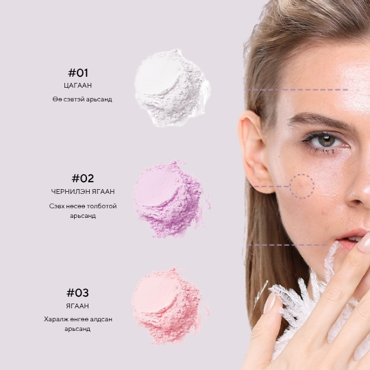 Будаг түгжиж, гадаргууд наалдахаас хамгаална. Нарийн нунтаг бүтэц нь арьсыг толийлгож, өнгө сэргээнэ