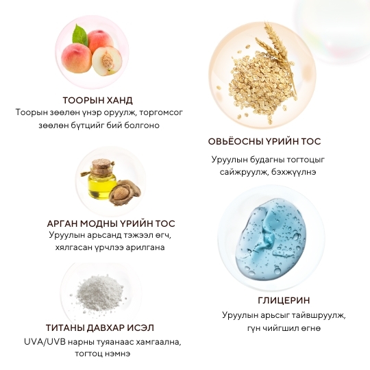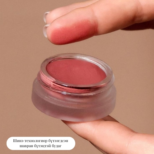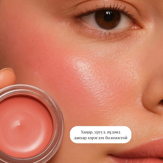 Өдрийн турш тогтоцтой, торгомсог шаварлаг бүтэцтэй, уруул хагалж хуурайшуулахгүй, хацар өнгөлөгч, болон уруулын будгаар хэрэглэнэ