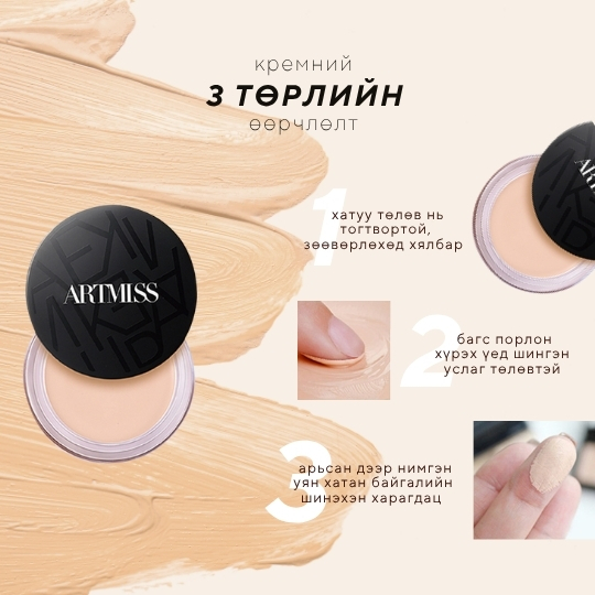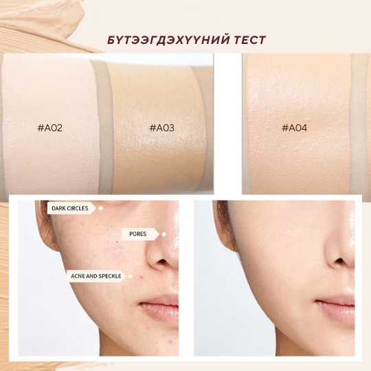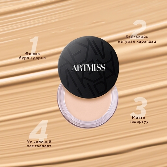 Бүх төрлийн өө сэвийг бүрэн дардаг, удаан эдэлгээтэй матте төгсгөлтэй шахмал крем