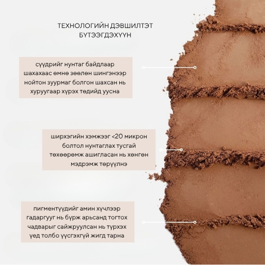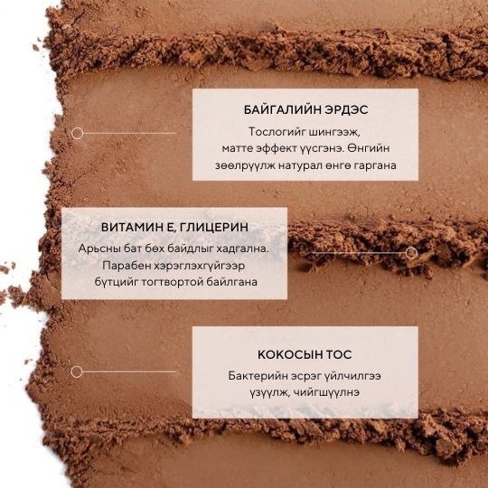 Нарийн ширхэгтэй, хурдан уусдаг, байгалийн мэт натурал харагдаж, нүүр хэлбэржүүлнэ