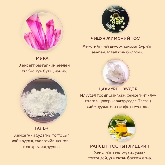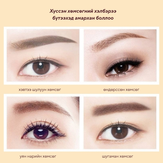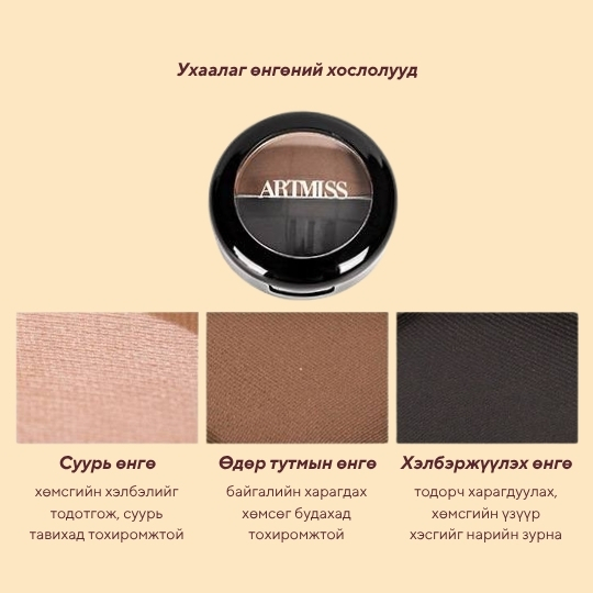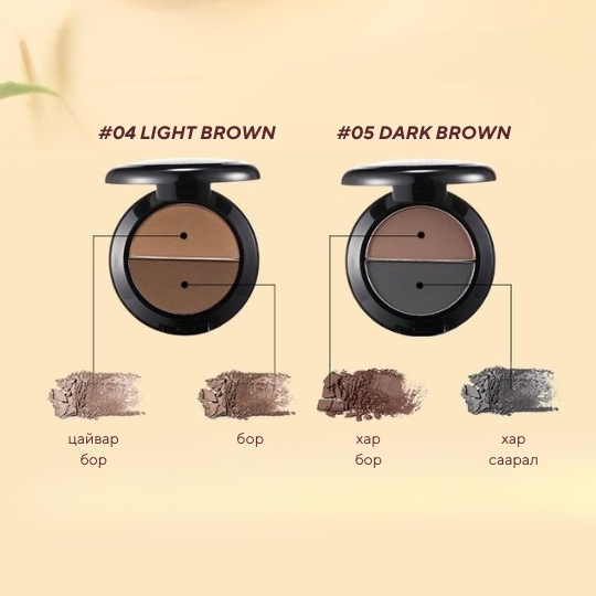 2 өнгийн уусалттай тень нь хөмсгийг натурал сүүдэрлэж уусгаж будахад тохиромжтой. Тогтоц сайтай арилахгүй