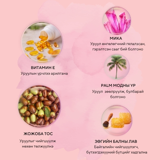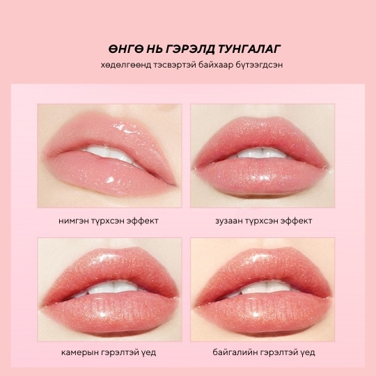 Нарийн ширхэгтэй саа нь од мэт гялалзаж уруулыг үрчлээгүй, том, бумбагар харагдуулна.