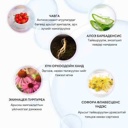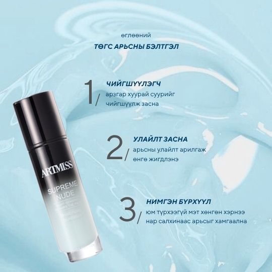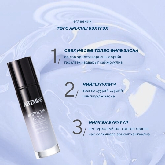 Арьсны өнгө жигдлэн, өө сэвийг дарж, давхар гүн чийгшүүлэх бейс. Будалтын суурь болохоос гадна дангаар нь түрхэн хэрэглэж болно