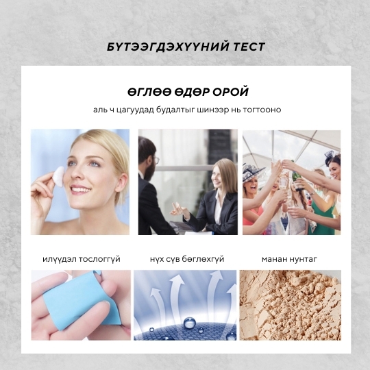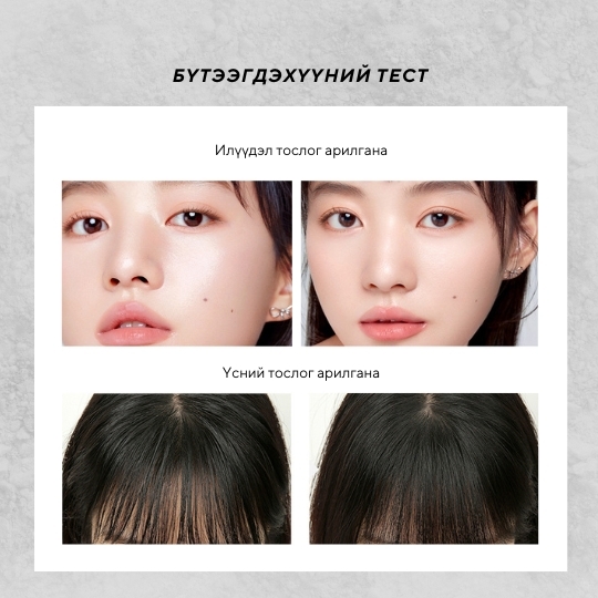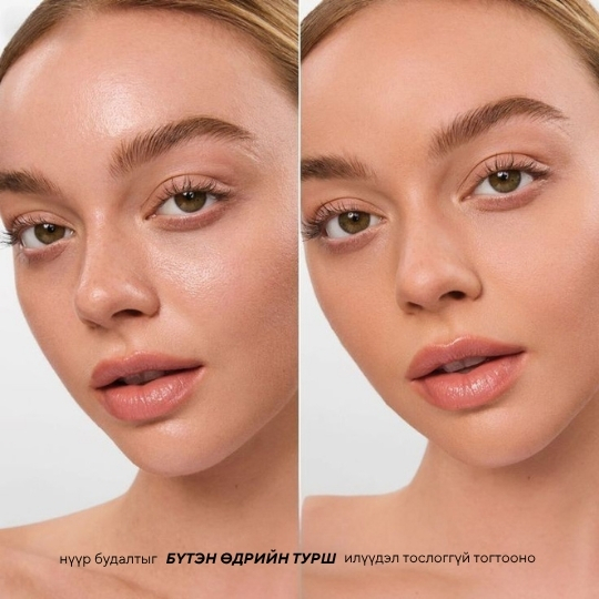 24 цагийн туршид будаг түгжиж, гадаргууд наалдахаас хамгаална. Нарийн тоосонцор бүтэц нь арьсыг толийлгоно