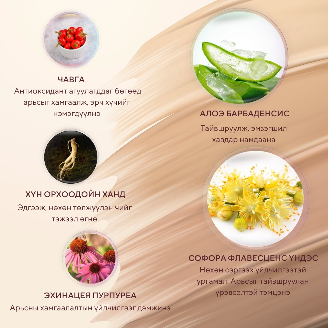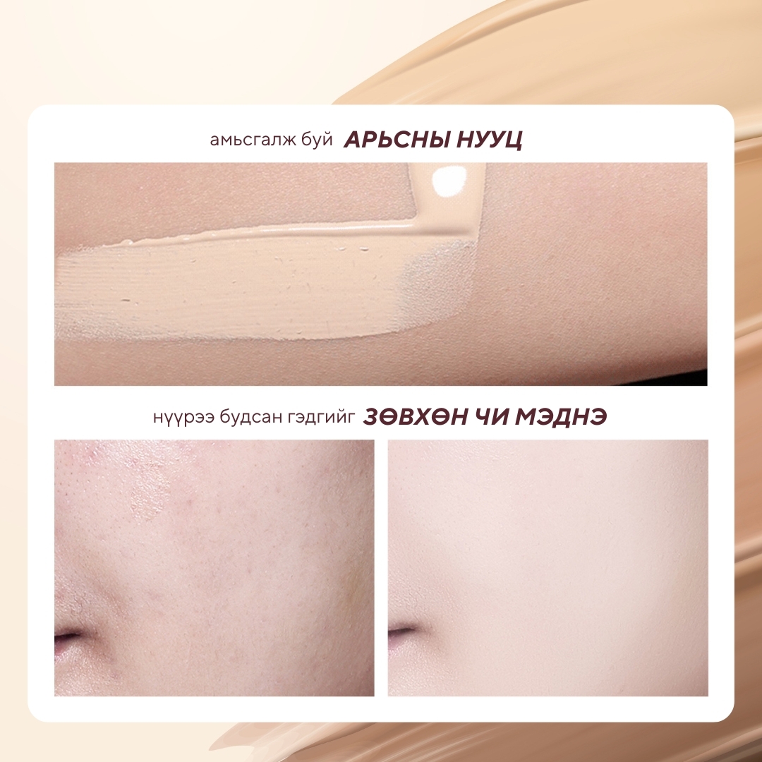 Дөнгөж будаж эхэлж буй охидуудад тохиромжтой, өө даралт багатай, арьсанд ачаалал үүсгэхгүй, 100% амьсгалдаг крем