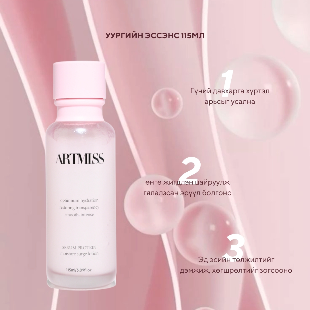 Хурдан задралтай уургийн саван нь арьсны өнгөц бохирдол, тоос шороо, будгийн үлдэгдлийг зөөлөн цэвэрлэж, арьсны жижиг нүх сүвийг нээж амьсгалуулна Уургийн тонер нь арьсыг богино хугацаанд сэргээж, арьсны ус, тосны баланс тэнцвэржүүлнэ Уургийн лосион нь арьсыг гүний давхарга хүртэл чийгшүүлж, арьсны өнгө цайруулж, хөгшрөлтөөс сэргийлэн арьсыг өргөж чангална Сийвэнгийн уургийн пептид өндөр тунгаар агуулсан ийлдэс нь эсийн түвшинд чийгшүүлж, үрчлээ арилган хөгшрөх процессыг зогсооно Авокода, тремелла, уургийн пептид, олон төрлийн ургамлын охиор баялаг нүүрний тос нь арьсны гүнд чийгийг 100% түгжиж, арьсыг тэжээлээр хангаж нөхөн төлжилтийг хурдасгана